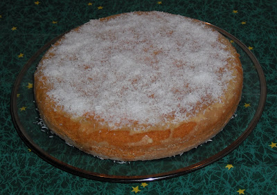 Batem-se bem as gemas com o açúcar, até formar um creme fofo. Junta-se a margarina derretida e bate-se bem. Adicionam-se, pouco a pouco, a farinha com o fermento e o coco. Por fim juntam-se as claras batidas em castelo. Deita-se numa forma untada e polvilhada e leva-se a forno quente.